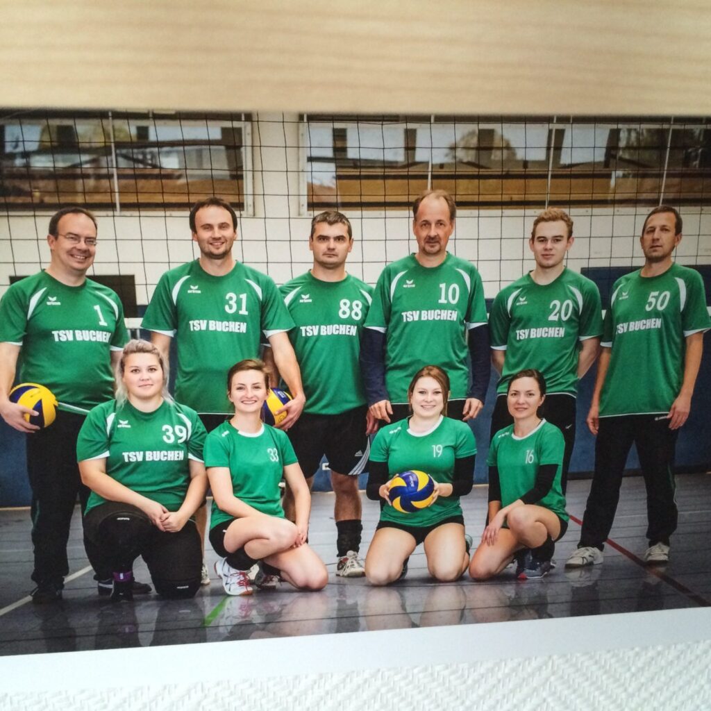 Mit minimaler Besetzung hat unser Spielmacher Heinz Bayer die bestmögliche Aufstellung eingesetzt: Jana und Marta als Stellerinnen, Kaa und Sergej als Außenangreifer und Heinz mit Slava im Angriff über die Mitte.