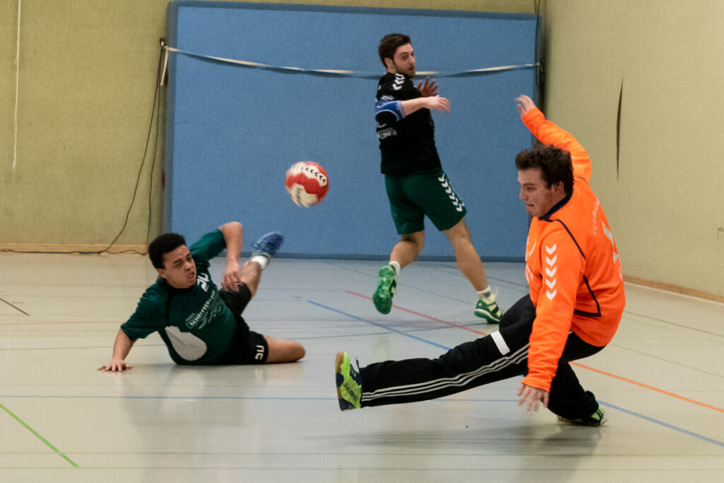Den besseren Start in die Partie erwischten allerdings die Gegner aus dem Schwabenland, sie konnten sich gleich am Anfang der Partie mit zwei Toren absetzen, doch dies sollte nur für 5 Minuten anhalten. Durch drei schnelle Tore von Schmitt und Weimer konnte man sich die erste Führung in der Partie erspielen und diese Führung konnte man kontinuierlich ausbauen. Die Mannschaft von Trainer Sebastian Wiener konnte sich in der 20. Spielminute auf 13:6 absetzen und hatte das Spiel vollkommen im Griff, doch auch ihr Gegner ließen sich nicht unterkriegen und kämpfte sich wieder heran und konnten zur Halbzeit den Vorsprung auf 5 Tore reduzieren.
