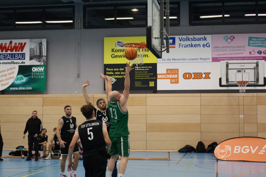 Einen erfolgreichen letzten Heimspieltag im Jahr 2024 konnten die Basketballer des TSV Buchen am vergangenen Samstag für sich verbuchen. Den Auftakt machte zunächst die Damenmannschaft in der Bezirksliga. Gegen den FC Bad St. Ilgen war man zwar von Anfang an physisch überlegen und konnte die größte Stärke, die Schnelligkeit, im ersten Viertel auch gut ausspielen, was zu einem guten Vorsprung führte. Allerdings brach dieser Vorsprung im zweiten Viertel wieder ein. Das Spiel wurde hektisch und zeitweilig kamen die Gegnerinnen auf unter zehn Punkte an die Damen aus Buchen heran. Erst nach einer deutlichen Ansprache von Coach Max Linsler fing sich das junge Team wieder und zündete zum Schluss noch ein wahres Punktefeuerwerk. Alleine Top-Scorerin Amelie Kaminsky steuerte schlussendlich 38 Punkte zum Gesamtsieg bei. Direkt danach ging es in der Oberliga Baden zum Top-Spiel der Herren. Zu Gast war der TSV Ettlingen, die derzeit den zweiten Platz in der Tabelle belegen. Buchen legte mit hohem Tempo vor und ging gegen direkt mit 7:0 in Führung. Doch die formstarken Ettlinger ließen sich das nicht gefallen und verkürzten die Führung durch ihre Pick and Roll Spielzüge gegen Ende des ersten Viertels auf nur einen Punkt (18:17). Auch im zweiten Viertel machten die Buchener weiterhin viel Druck in der Transition und erspielten sich somit einfache Punkte. Trotz guter offensiv Aktionen gelang es den sonst so defensiv starken Buchenern nicht die Gäste beim Zug zum Korb vor sich zu halten. Aus diesen Überzahlaktionen erzielte Ettlingen fünf ihrer insgesamt sechs Dreier im zweiten Viertel. Zur Halbzeit lagen die Buchener so mit 35:41 hinten. Nach ungewohnt vielen Punkten in der ersten Hälfte wurde die Partie nach der Halbzeit zunehmend physischer. Auf beiden Seiten häuften sich die Fouls, doch während die Grün-Weißen durch ihre tiefe Rotation noch mehr Fouls zu geben hatten, sah es bei den Gästen langsam eng aus. Mit gerade einmal zwei Punkten Rückstand erhöhte Buchen erneut die Intensität in der Schlussphase: die Offensive der Ettlinger fand so nur selten Ansätze gegen die Länge und Athletik der Buchener. Auch nach 35 Minuten dieses nervenaufreibenden Schlagabtauschs auf Augenhöhe konnte kein Team eine deutliche Führung erspielen. Doch immer, wenn Buchen in den entscheidenden Minuten einen Korb brauchte fand der Ball sich in den Händen von Topscorer Leon Linsler wieder, der seine Würfe treffsicher verwandelte und somit maßgeblich zum Sieg der Buchener beitrug. Mit 74:70 ging dieser zwar nicht immens deutlich aber nach einer sehr harten Partie mehr als verdient an die Buchener, die sich so erneut wichtige Punkte in der Tabelle sichern konnten. Lange Zeit sich auszuruhen hat da Team dennoch nicht, denn während für die anderen Seniorenteams nun erstmal eine Pause ansteht, heißt es für die Oberliga-Mannschaft am kommenden Samstag: Auswärtsspiel in Sandhausen, bei dem man erneut unbedingt gewinnen will.